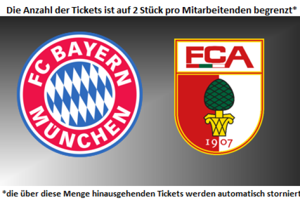 | Wichtige Informationen | Dieses Ticket ist keine offizielle Eintrittskarte und dient ausschließlich zur Abholung der offiziellen Tickets für das FC Bayern Heimspiel. Der Weiterverkauf der offiziellen Tickets ist nicht zulässig ! Der Umtausch oder die Rückgabe gekaufter Tickets ist nicht möglich. BEACHTEN SIE FOLGENDE ABHOLZEITEN: Gültig nur für Mitarbeitende der AUDI AG und deren |