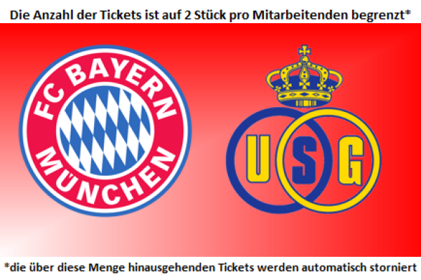 | Wichtige Informationen | Dieses Ticket ist keine offizielle Eintrittskarte und dient ausschließlich zur Abholung der offiziellen Tickets für das FC Bayern Heimspiel. Der Weiterverkauf der offiziellen Tickets ist nicht zulässig ! Der Umtausch oder die Rückgabe gekaufter Tickets ist nicht möglich. BEACHTEN SIE FOLGENDE ABHOLZEITEN: Gültig nur für Mitarbeitende der AUDI AG und deren |